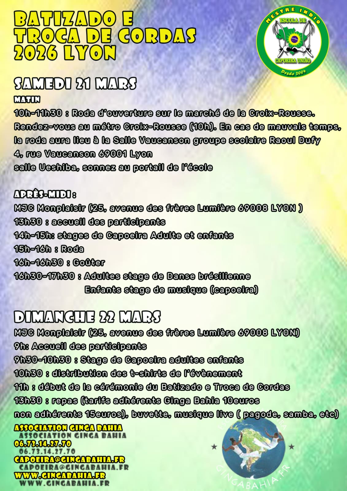 Le groupe Escola de Capoeira União a été fondé à Lyon (France) le 29 Juin 2004 par Mestre Indio.
